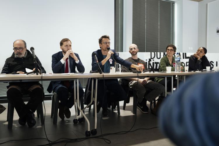 Les candidat·e·s aux prochaines elections municipales de Toulouse, sont convies a debatrent autour de la question des projets de demolitions et le logement social a Toulouse a l initiatives de differents organismes, le collectif des architectes en défense du patrimoine Candilis au Mirail, le collectif Stop Demolitions, la CNL 31, le DAL 31, le conseil citoyen Reynerie, la LDH 31, la Libre Pensee 31, le CPES (comite populaire d entraide et de solidarite) du Mirail, avec des universitaires et des architectes et habitants et associations du quartier, demandent en autres un moratoire concernant des solutions de rehabilitation sans demolition et de preserver le patrimoine culture HLM existant, notamment des immeubles Candilis au Mirail. France, Toulouse le 7 février 2026.